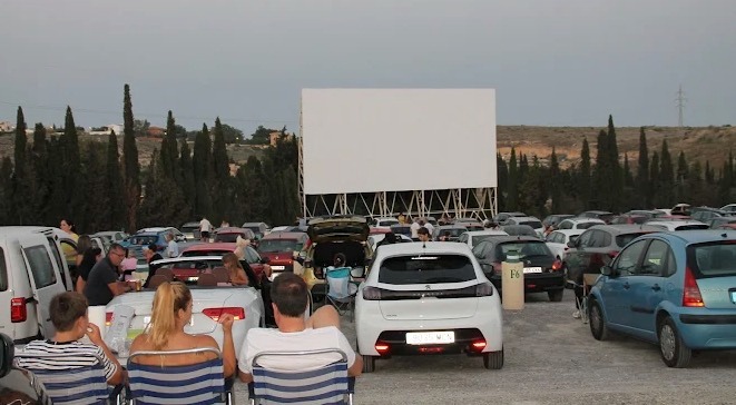 Disfruta del cine al aire libre en el histórico autocine El Sur, Mutxamel, Alicante. Proyecciones de cortometrajes y documentales en un ambiente nostálgico.